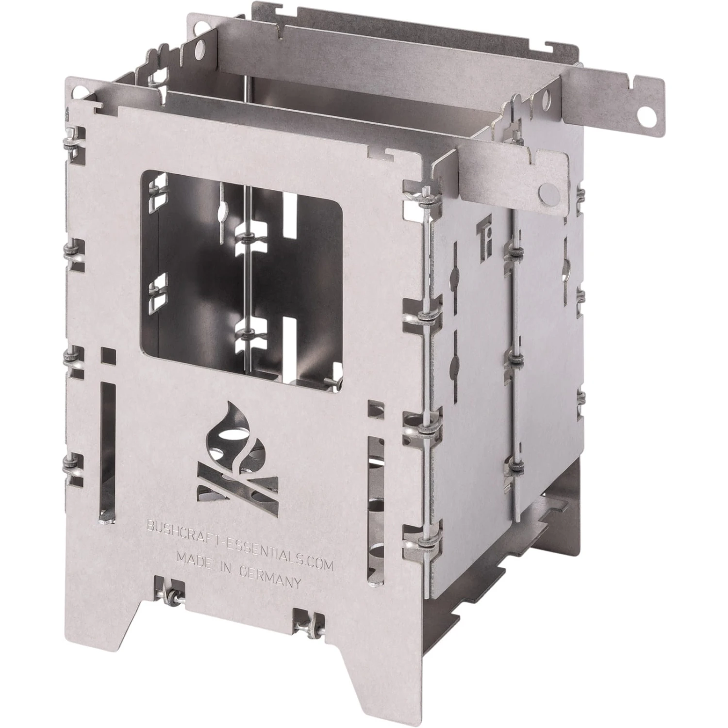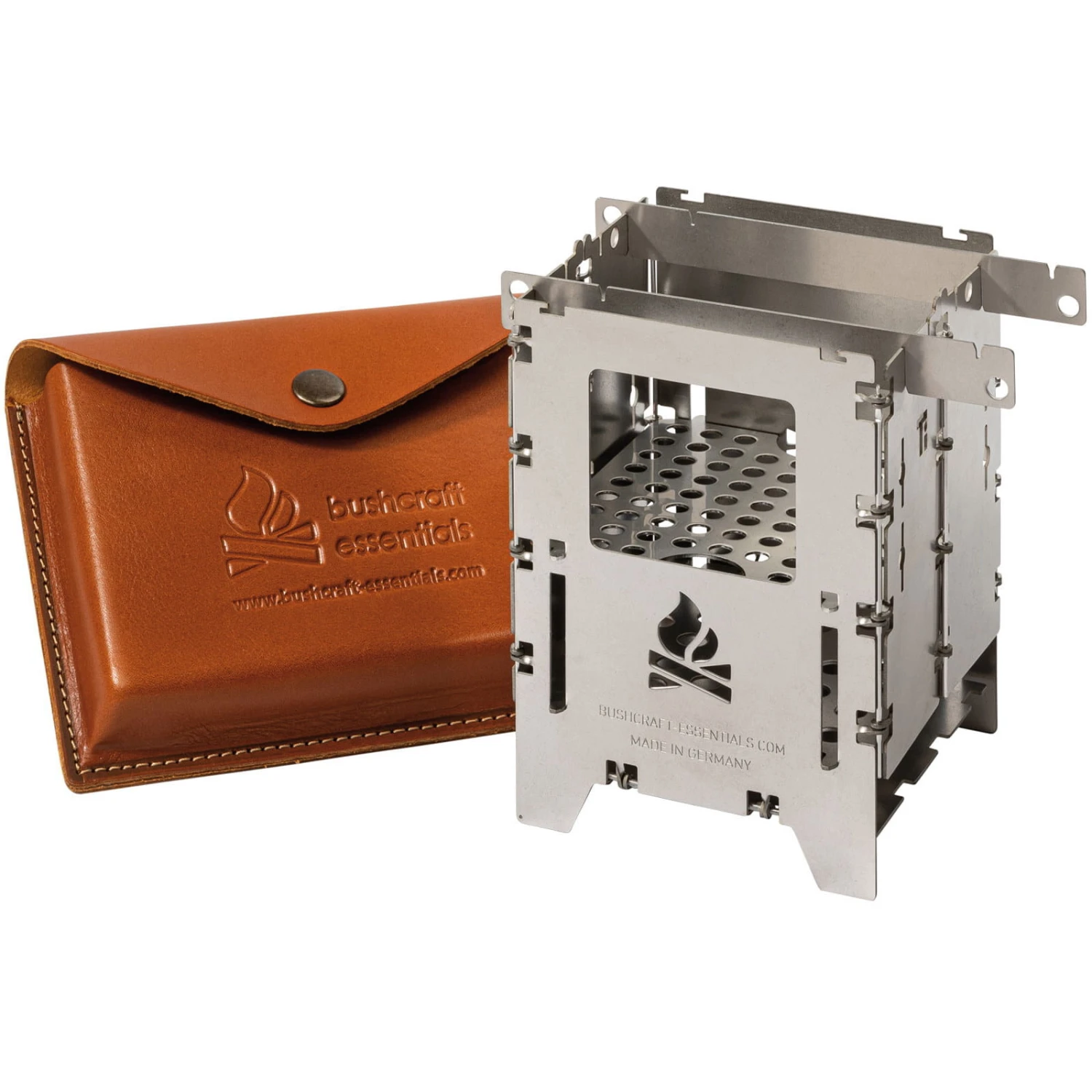 Die Bushbox LF Titanium Premium (large, foldable) im Set ist nicht nur der missing link zwischen Bushbox und Bushbox XL und verbindet das Beste beider Welten: sehr klein, trotzdem faltbar und mit so gutem Zug wie ein Großer. Selbstverständlich ist die Bushbox LF mit denselben speziellen und einzigartigen Scharnieren hergestellt wie die Bushbox XL: Diese extrem aufwendige Scharniertechnik stellt sicher, dass die Scharniere nie verkleben können. Geliefert wird die Bushbox LF zusammen mit einem vielseitig verwendbaren Topfauflagen-Set. Wie alle Kocher von Bushcraft Essentials wird die Bushbox LF komplett in Deutschland aus Titanium hergestellt und mehrstoff-fähig (Betrieb mit Holz, Esbit, Trangia etc. möglich). Im Set enthalten ist das Universalrost LF, Topfauflagen und eine handgefertigte, qualitativ hochwertige Tasche aus Leder.