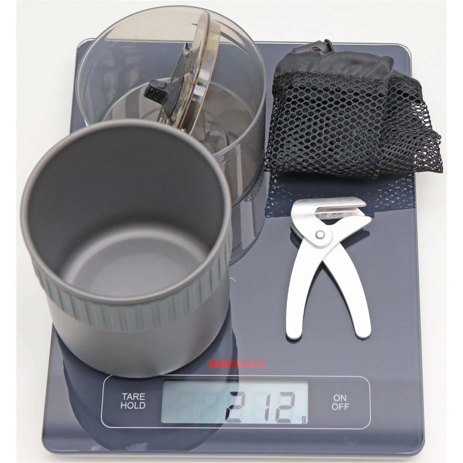 Das Trail Mini Solo Kochset von MSR ist auf Leichtigkeit getrimmt und eignet sich für eine Person. Im Set enthalten ist ein Aluminiumtopf (hard anodisiert) mit 750 ml Volumen und isoliertem Griffring, eine Schüssel aus BPA freiem Kunststoff und 475 ml Fassungsvermögen, einen aufsetzbaren Deckel mit Trink-/Sieböffnung (passend sowohl für Topf als auch Schüssel) sowei eine Topfgriffzange. Der Topf ist so bemessen, dass in ihm ein PocketRocket 2 Kocher und eine Brennstoffkartusche (110 g) Platz finden (beides optional als Zubehör erhältlich).