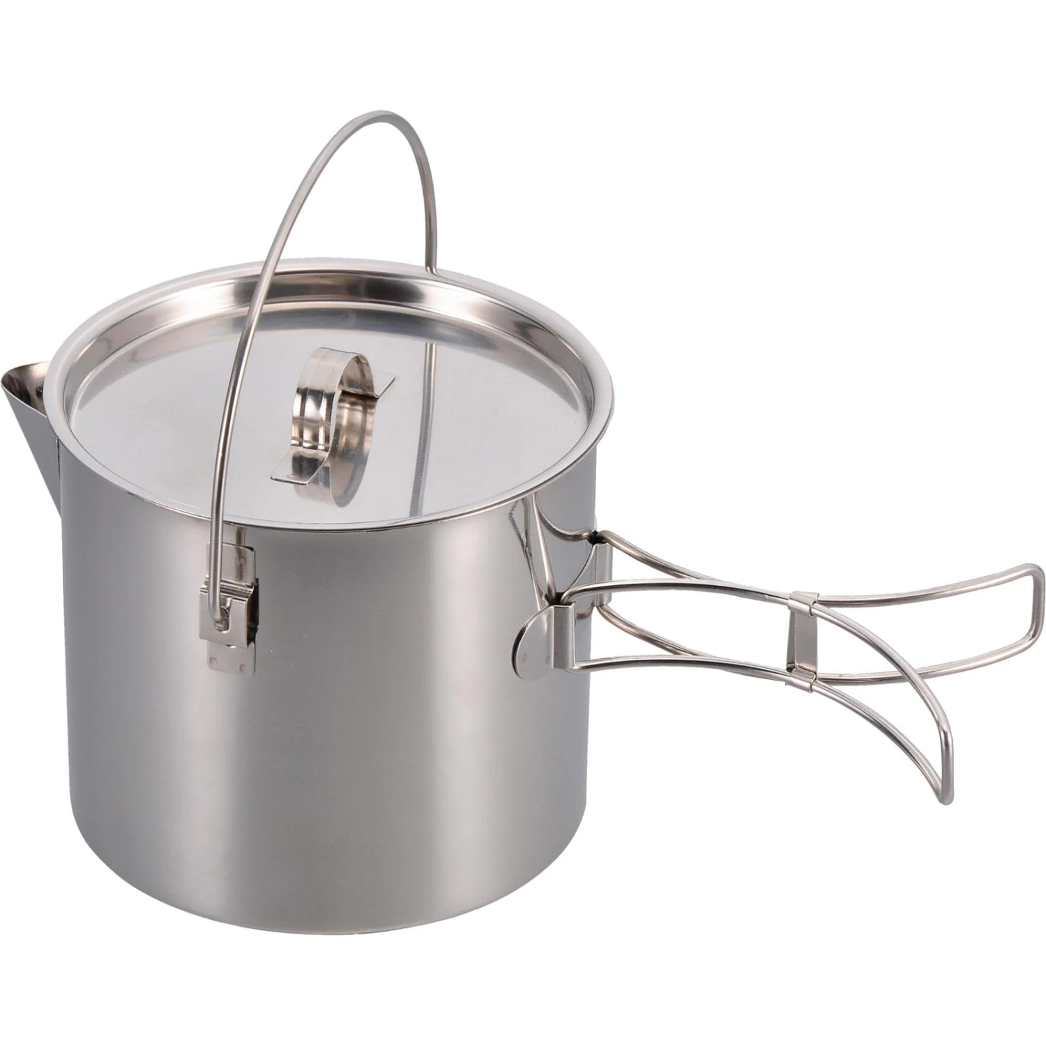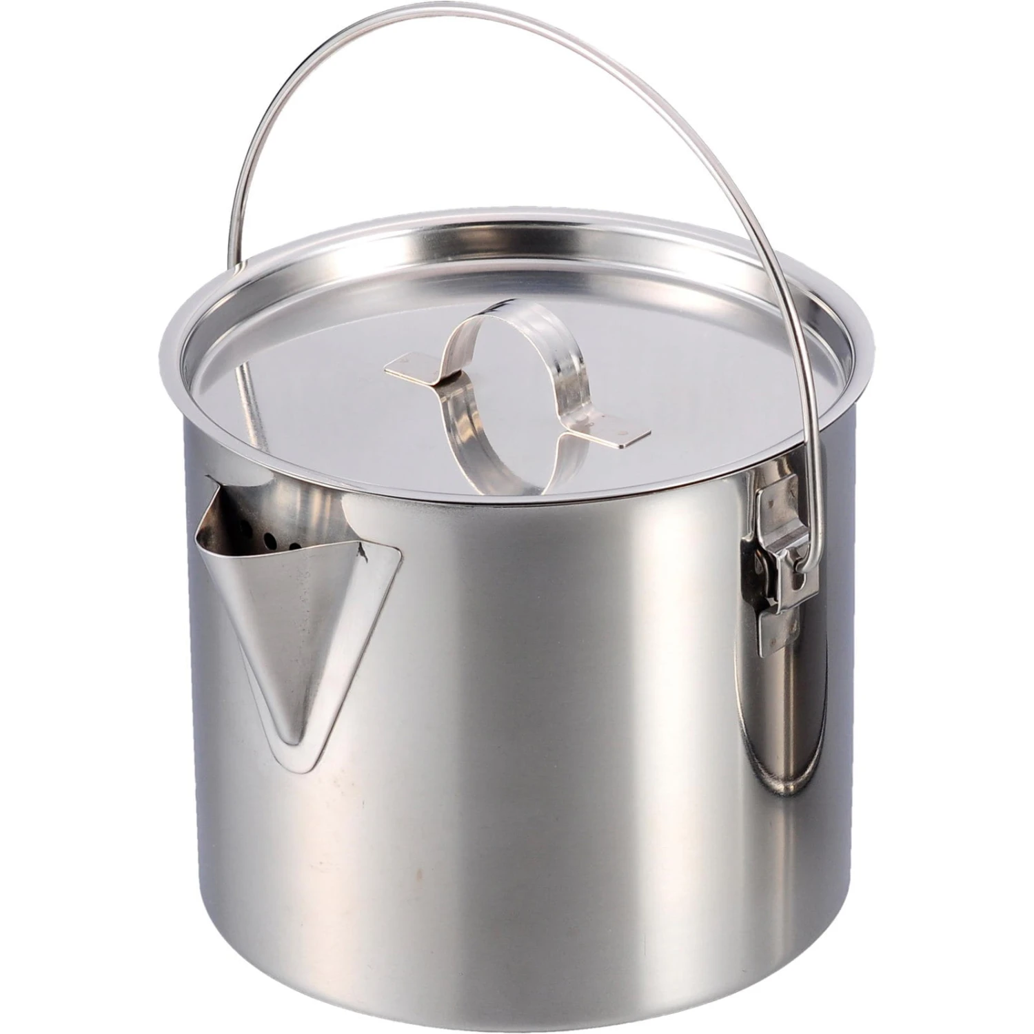 Der Edelstahl Multitopf ist ein leichter und robuster Teekessel und Kochtopf aus hochwertigem Edelstahl von Origin Outdoors. Er verfügt über einen großen Henkel, Klappgriffe und einen groben Sieb im Ausguss. Durch die Klappgriffe lässt sich der Multitopf kompakt und platzsparend verstauen. In senkrechter Henkelposition werden Henkel und Deckel in dieser Position fixiert. Er kann sowohl am Henkel über dem offenen Feuer aufgehängt als auch mit dem Gaskocher oder der Herdplatte zu Hause benutzt werden. Darüber hinaus kann der Multitopf auch als Kochtopf für Nudeln, Reis oder Gemüse verwendet werden und das Wasser über die Ausgießöffnung abgegossen werden.