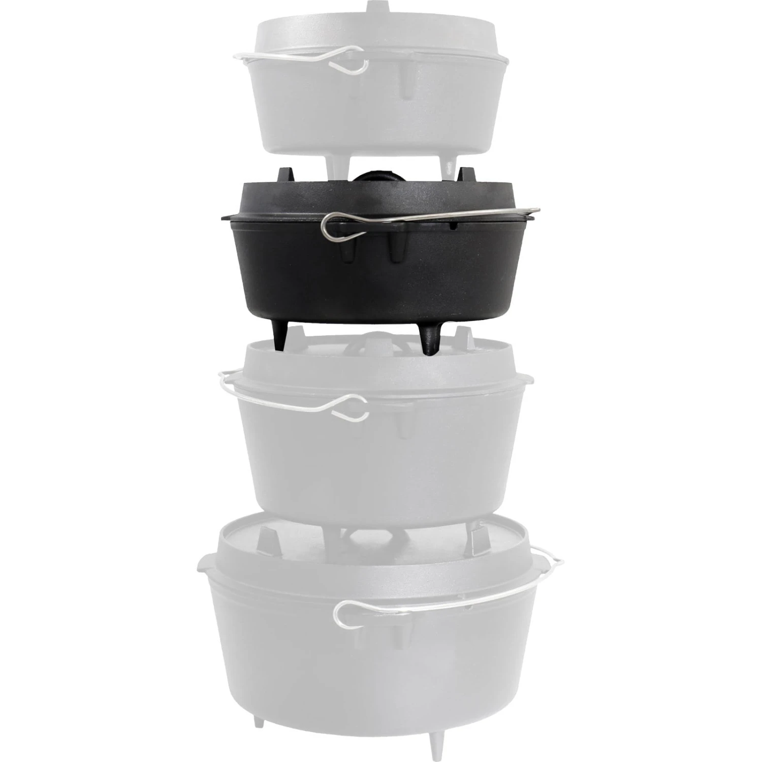 | Merkmale | Deckel auch als Pfanne oder Servierplatte nutzbar, exzellente Wärmespeicherung, für offene Feuerstellen geeignet, sehr robust, seitliche Thermometerdurchführung, Tragegriff, vielseitig verwendbar, vorbehandelte Oberfläche |