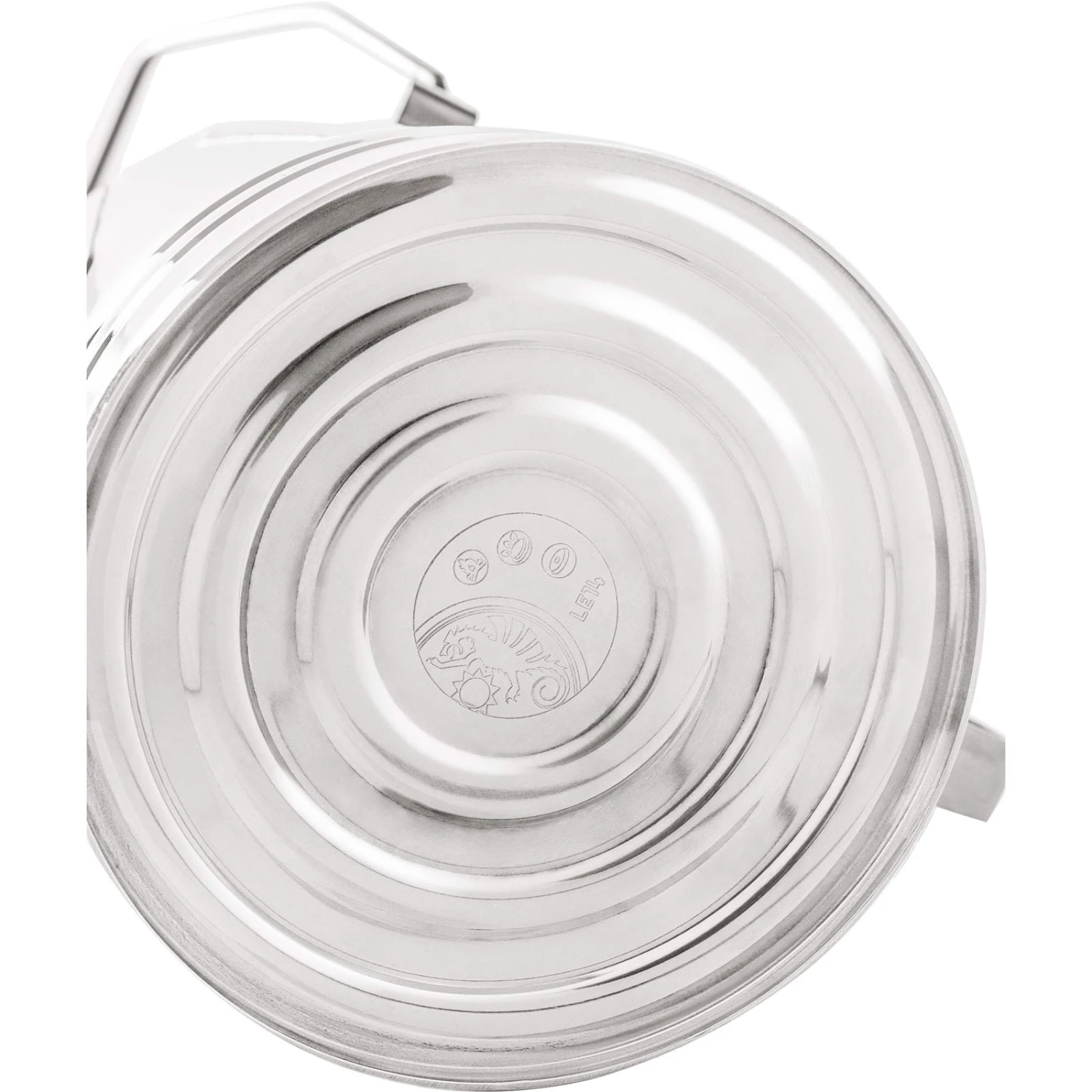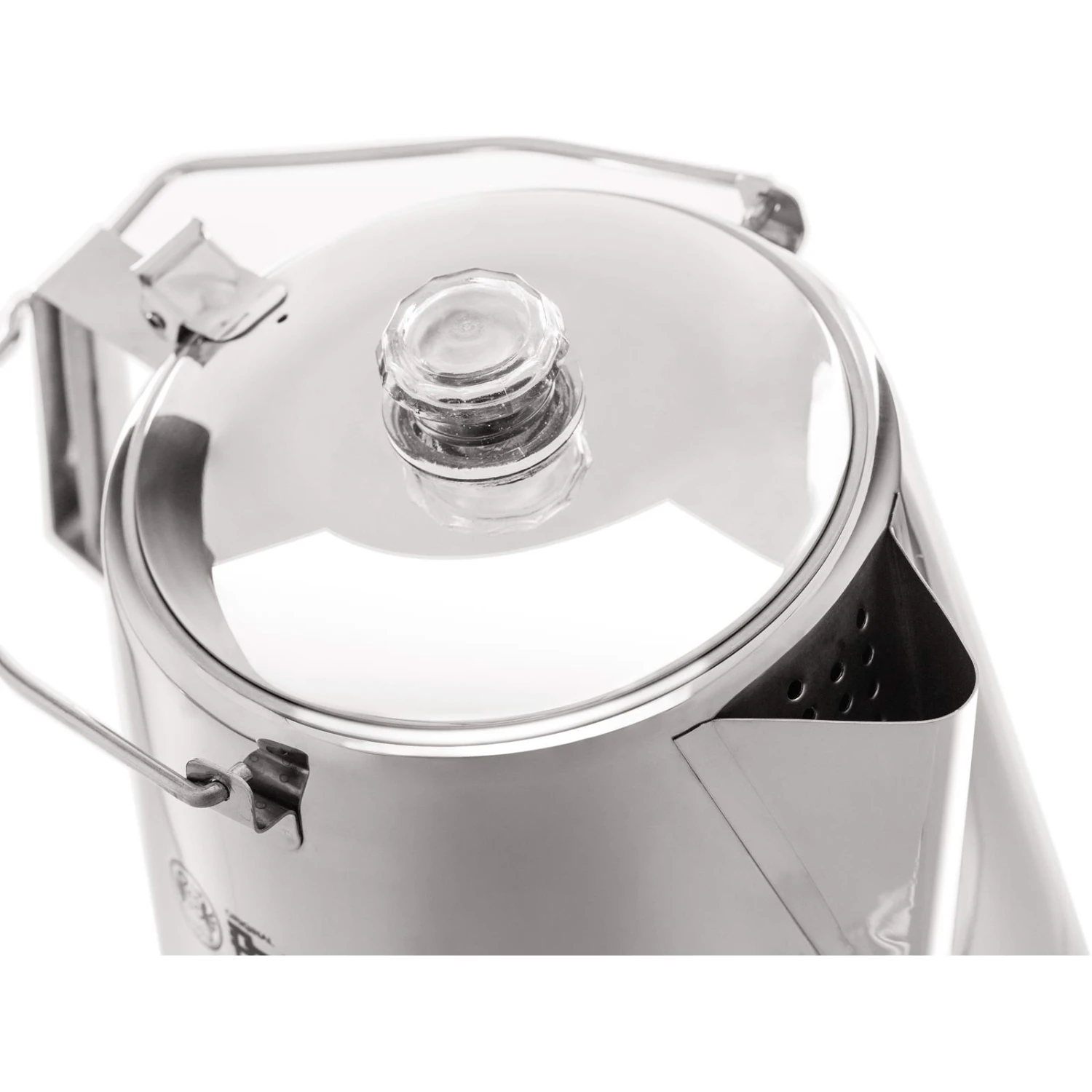 Der Perkolator Perkomax LE14 von Petromax aus Edelstahl mit Glasknauf für Tee- und Kaffeespezialitäten. Mit dem Petromax Perkolator aus Edelstahl gelingt die Zubereitung des Lieblingskaffees und -tees besonders schonend. Das einzigartige Zubereitungsprinzip verleiht dem Getränk ein unvergleichliches Aroma. Mit dem Edelstahl-Perkomax LE14 kocht man seinen Kaffee bequem immer da, wo man ihn braucht. Man kann die vielseitige Kanne mit dem stabilen Henkel sowohl über das Lagerfeuer hängen als auch am heimischen Herd (Elektro oder Gas) verwenden. Die Funktionsweise des Perkolators ist einfach, aber überzeugend: In der Kanne befindet sich eine Vorrichtung mit Röhrchen und Siebbehälter für Kaffee- oder Teepulver. Das kochende Wasser steigt im Röhrchen hoch und läuft durch den durchlässigen Deckel in das Getränkepulver, nimmt Aromastoffe auf und vermischt sich mit dem verbliebenen Wasser. Somit wird der Geschmack immer intensiver, je länger das Wasser im Perkolator zirkuliert: Das Prinzip setzt auch die feinsten Geschmacksnuancen aus Tee und Kaffee frei. Durch den Glasknauf im Deckel kann man den gesamten Vorgang beobachten. Der Perkomax LE14 fasst etwa 2,1 Liter und ergibt ca. 14 Tassen.